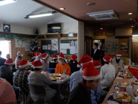 今日は、みなさんが待ちに待ったクリスマス会。(株)つなぐ代表取締役の伊藤夢人さんを来賓にお迎えし楽しい食事会となりました。料理も職員で朝早くから準備をしてゲームやレクリエーションでお菓子等の景品も用意して楽しい一日となったようです。